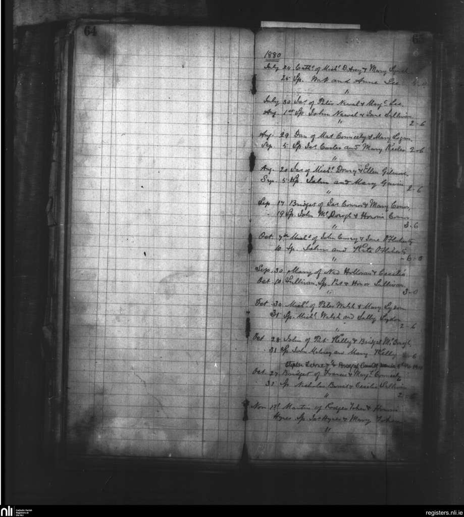 Killanin; County of Galway; Diocese of Tuam. Baptisms, July 1880 to Nov. 1880