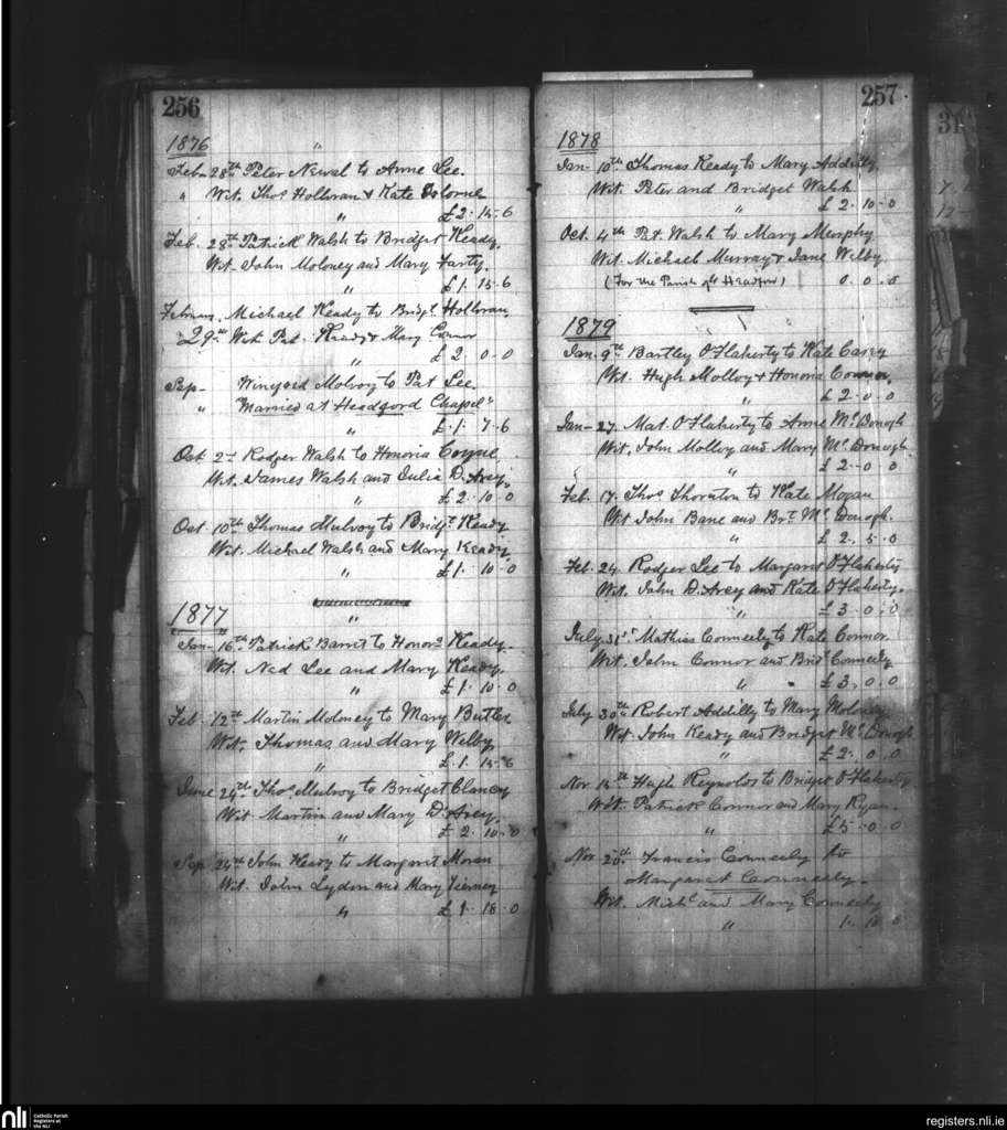 Killanin; County of Galway; Diocese of Tuam. Marriages, Feb. 1876 to Nov. 1879
