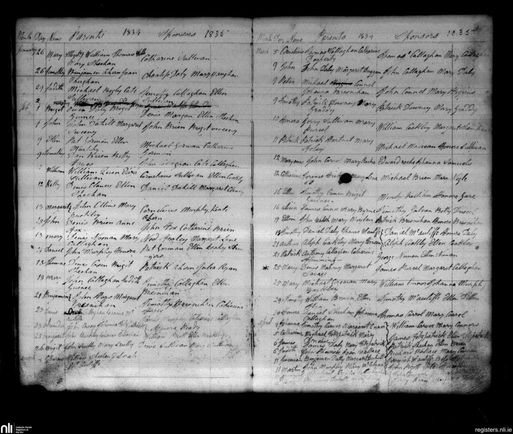 Kanturk; County of Cork; Diocese of Cloyne. Baptisms, Jan. 1834 to Apr. 1834