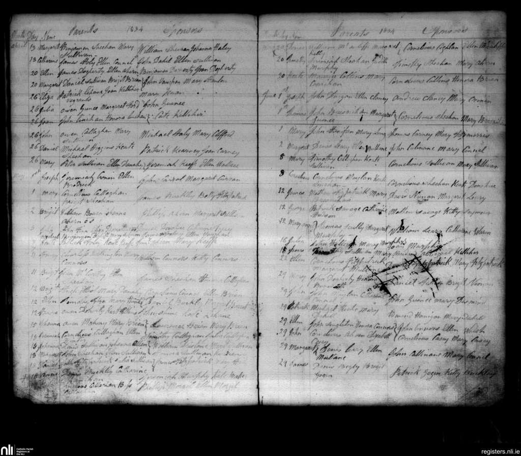 Kanturk; County of Cork; Diocese of Cloyne. Baptisms, Apr. 1834 to June 1834