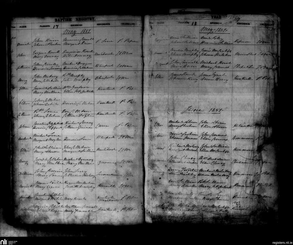 Kanturk; County of Cork; Diocese of Cloyne. Baptisms, May 1851 to June 1851