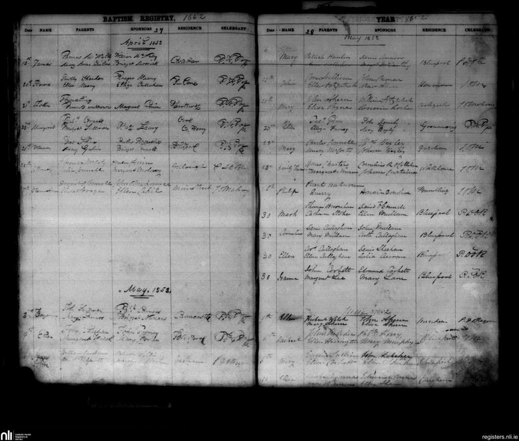 Kanturk; County of Cork; Diocese of Cloyne. Baptisms, Apr. 1852 to June 1852