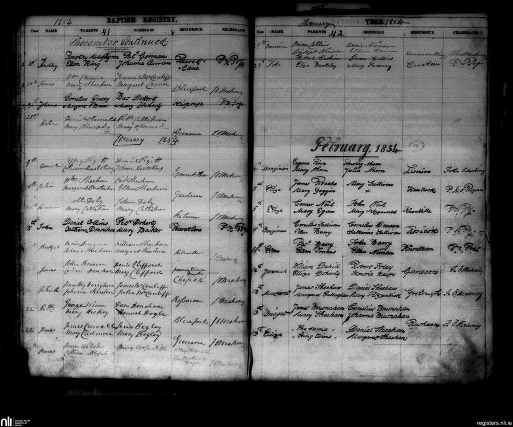 Kanturk; County of Cork; Diocese of Cloyne. Baptisms, Dec. 1853 to Feb. 1854