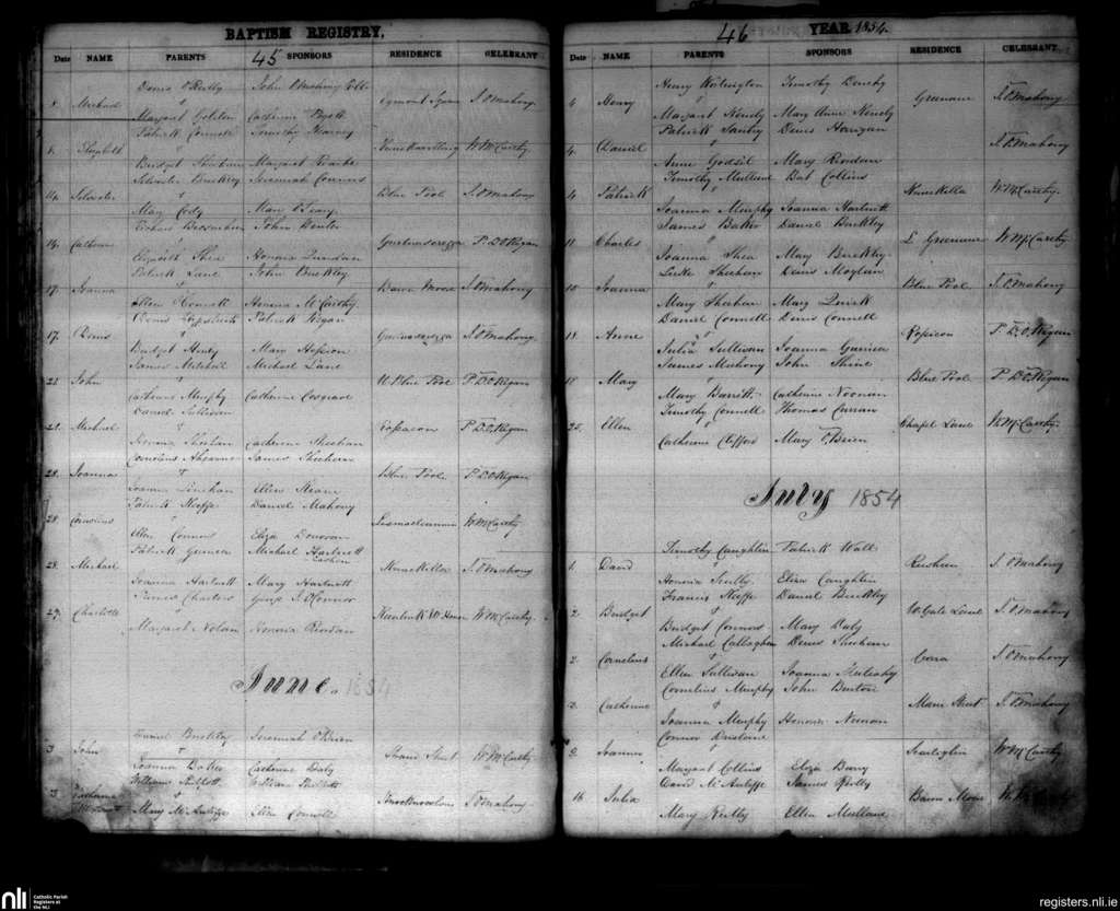 Kanturk; County of Cork; Diocese of Cloyne. Baptisms, May 1854 to July 1854
