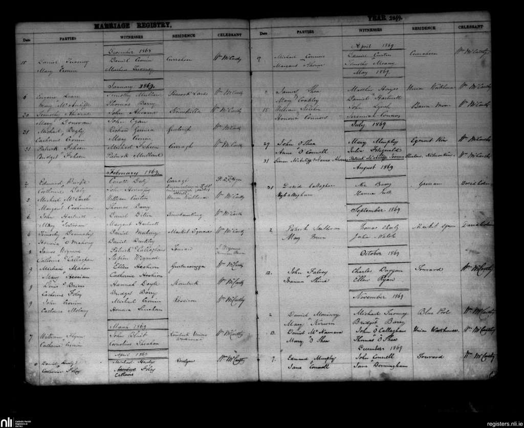 Kanturk; County of Cork; Diocese of Cloyne. Marriages, Dec. 1868 to Dec. 1869