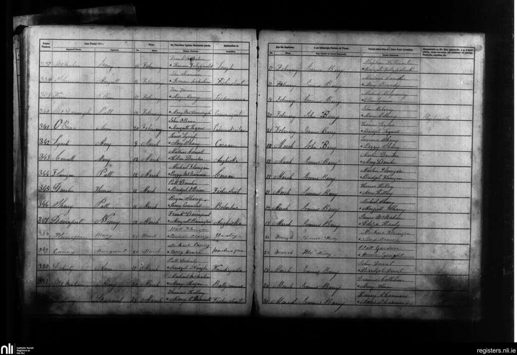 Lisdoonvarna; County of Clare; Diocese of Galway. Baptisms, Feb. 1858 to Mar. 1858
