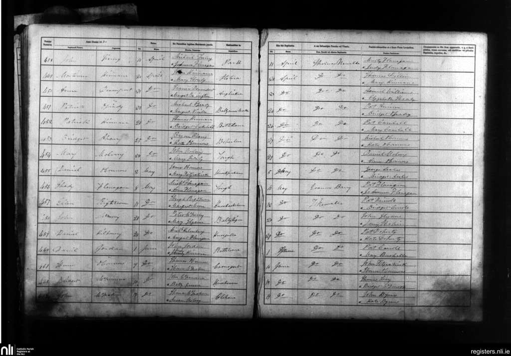 Lisdoonvarna; County of Clare; Diocese of Galway. Baptisms, Apr. 1860 to June 1860