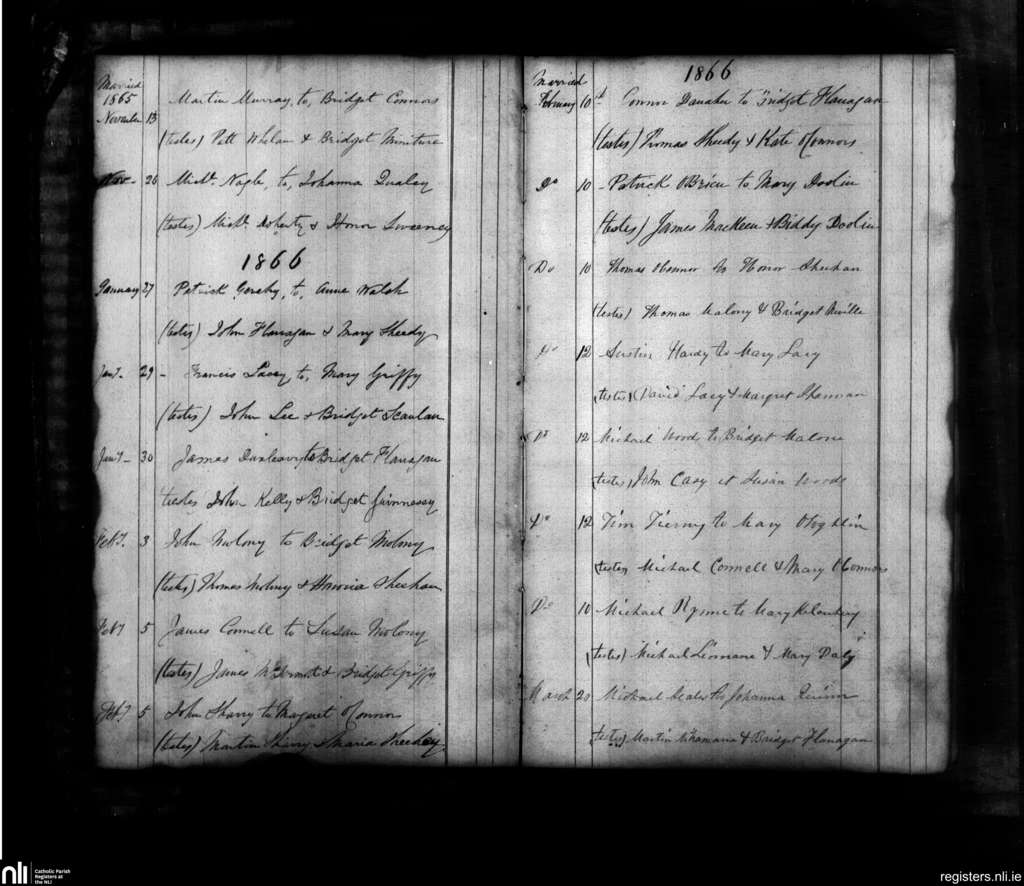 Lisdoonvarna; County of Clare; Diocese of Galway. Marriages, Nov. 1865 to Mar. 1866