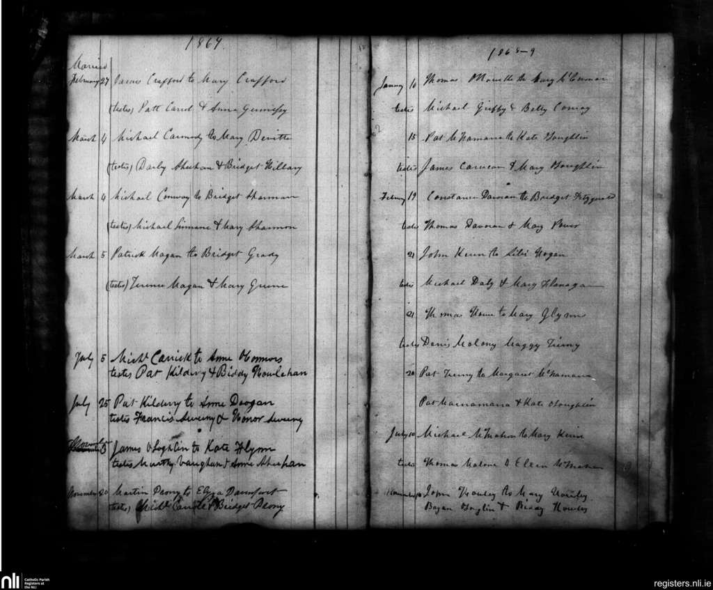 Lisdoonvarna; County of Clare; Diocese of Galway. Marriages, Feb. 1867 to Nov. 1868