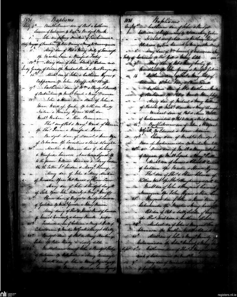 Kinvara; County of Galway; Diocese of Galway. Baptisms, July 1831 to Aug. 1831