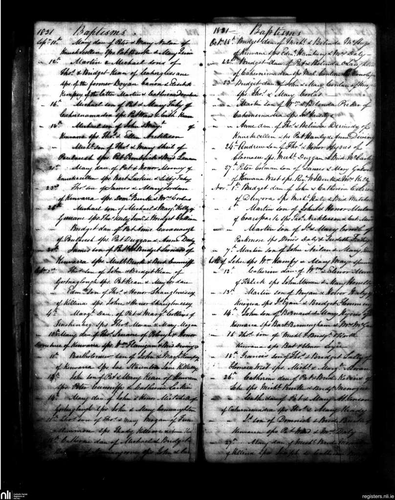 Kinvara; County of Galway; Diocese of Galway. Baptisms, Sep. 1831 to Nov. 1831