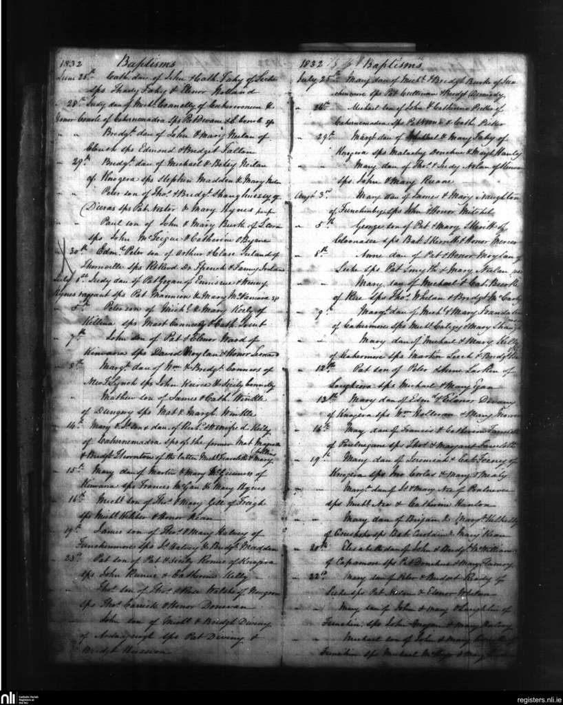 Kinvara; County of Galway; Diocese of Galway. Baptisms, June 1832 to Aug. 1832