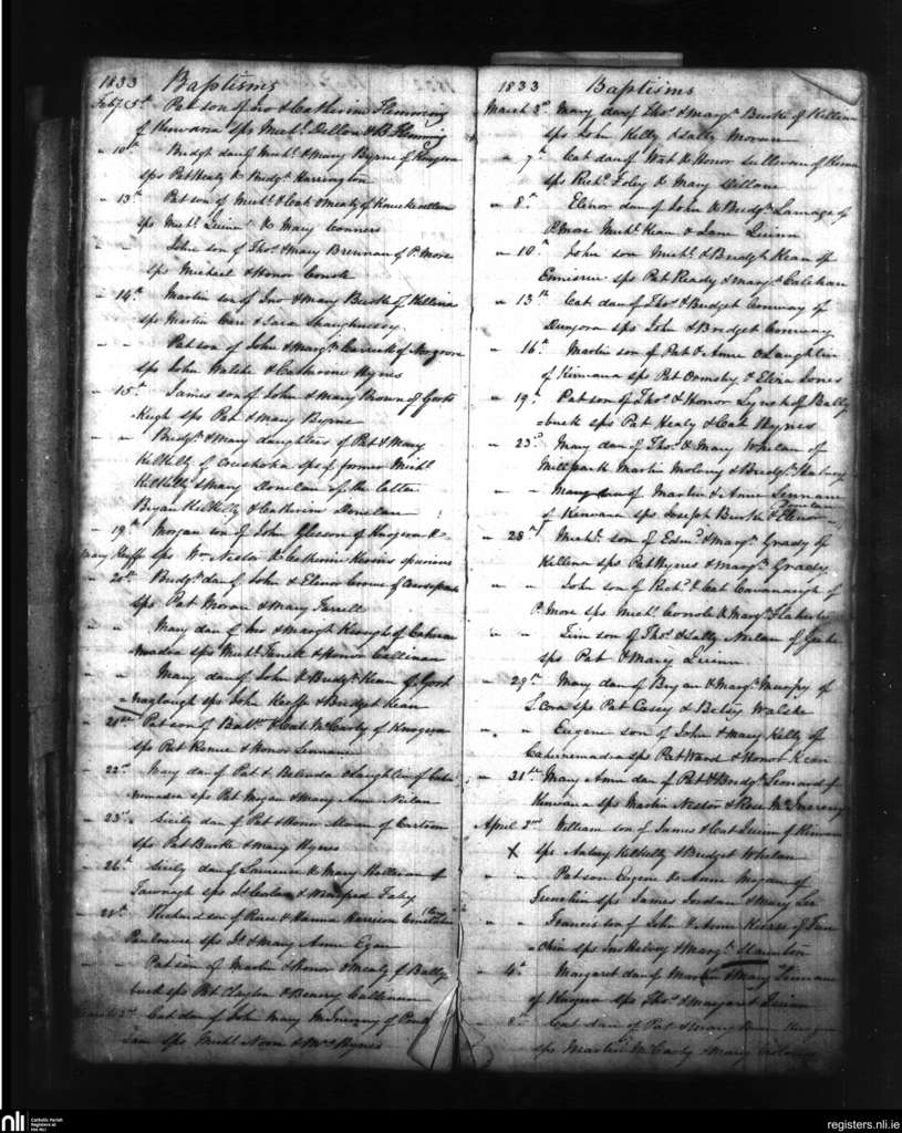 Kinvara; County of Galway; Diocese of Galway. Baptisms, Feb. 1833 to Apr. 1833