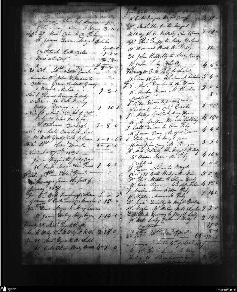 Kinvara; County of Galway; Diocese of Galway. Marriages, Sep. 1836 to May 1837