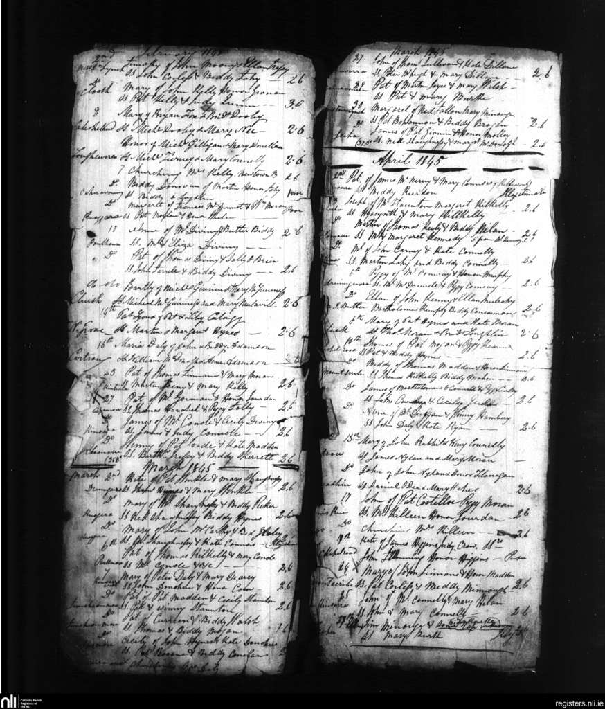 Kinvara; County of Galway; Diocese of Galway. Baptisms, Feb. 1845 to Apr. 1845