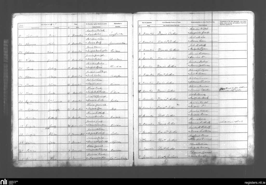 Kinvara; County of Galway; Diocese of Galway. Baptisms, Dec. 1854 to Jan. 1855