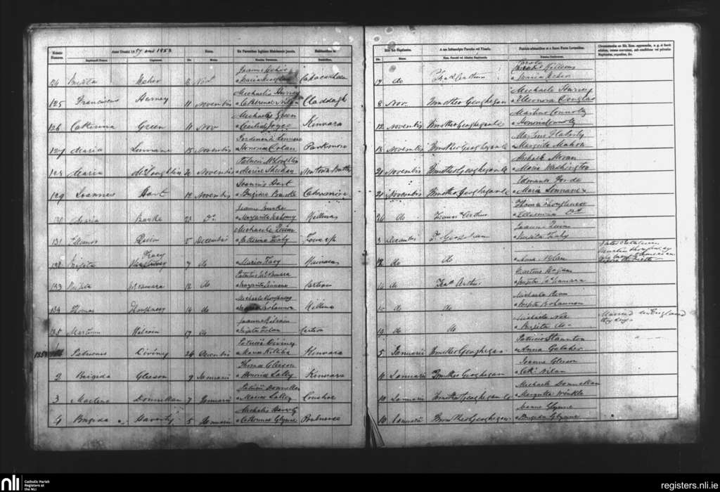 Kinvara; County of Galway; Diocese of Galway. Baptisms, Nov. 1857 to Jan. 1858