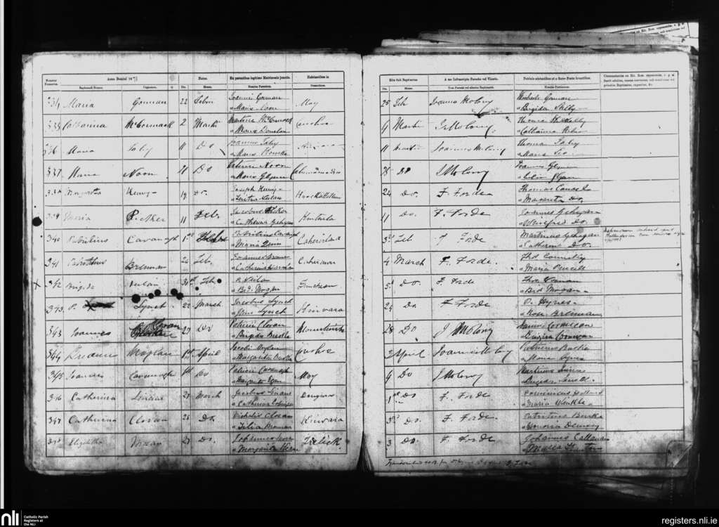 Kinvara; County of Galway; Diocese of Galway. Baptisms, Feb. 1871 to Apr. 1871