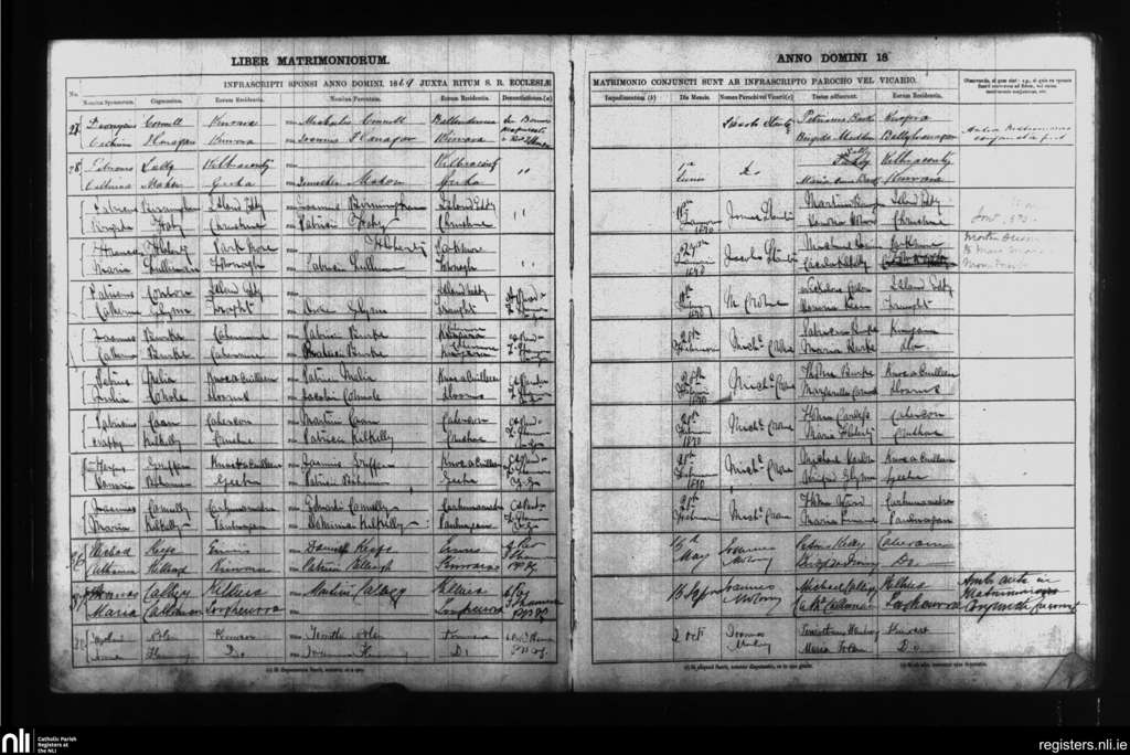 Kinvara; County of Galway; Diocese of Galway. Marriages, June 1869 to Oct. 1870