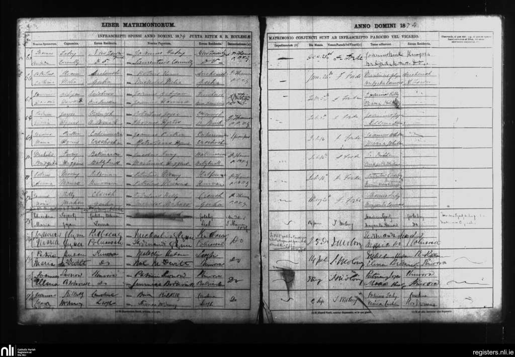 Kinvara; County of Galway; Diocese of Galway. Marriages, Dec. 1873 to Sep. 1874