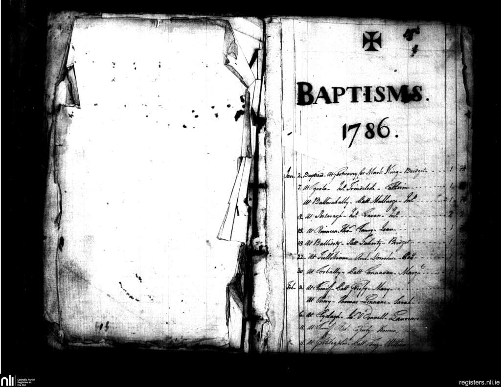 Moycullen; County of Galway; Diocese of Galway. Baptisms, Jan. 1786 to Feb. 1786