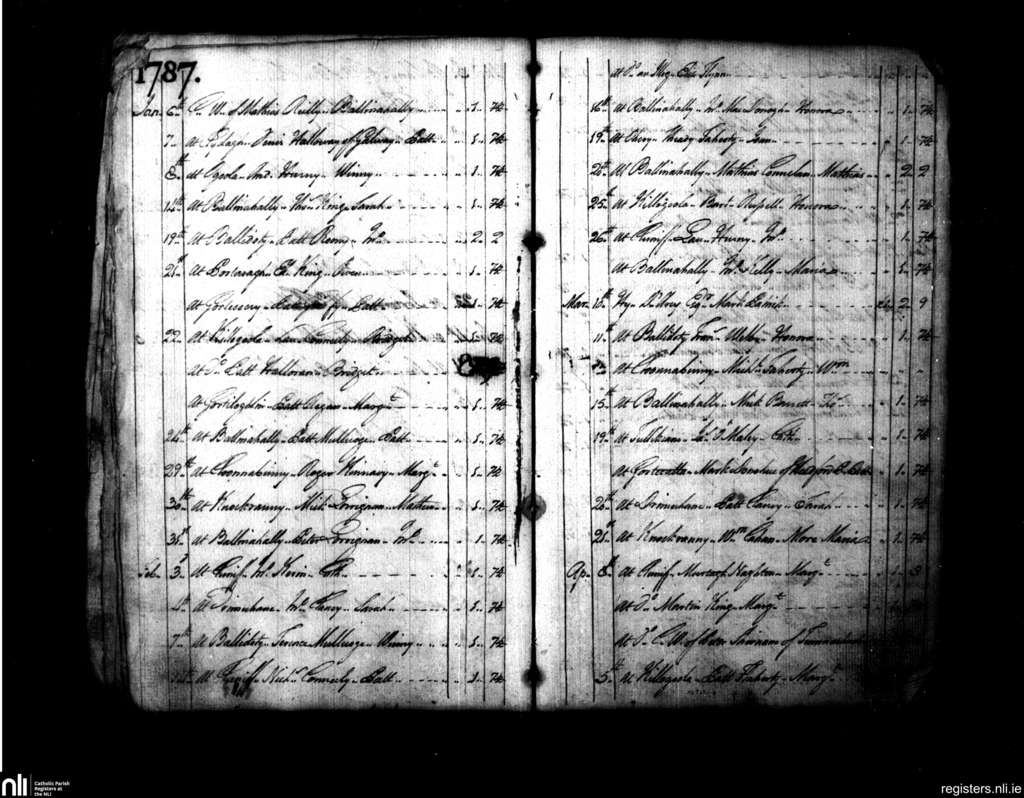 Moycullen; County of Galway; Diocese of Galway. Baptisms, Jan. 1787 to Apr. 1787