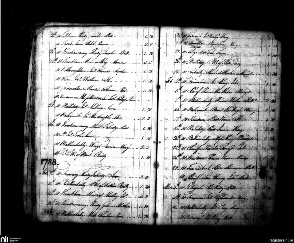 Moycullen; County of Galway; Diocese of Galway. Baptisms, Dec. 1787 to Mar. 1788
