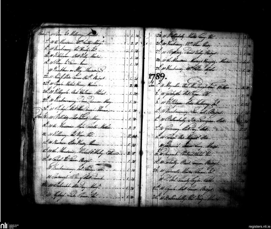 Moycullen; County of Galway; Diocese of Galway. Baptisms, Nov. 1788 to Jan. 1789