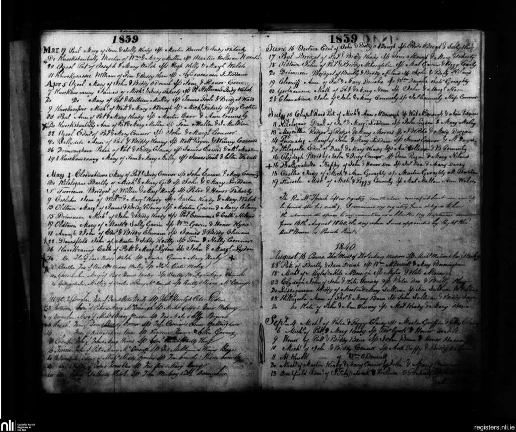 Moycullen; County of Galway; Diocese of Galway. Baptisms, Mar. 1839 to Sep. 1840
