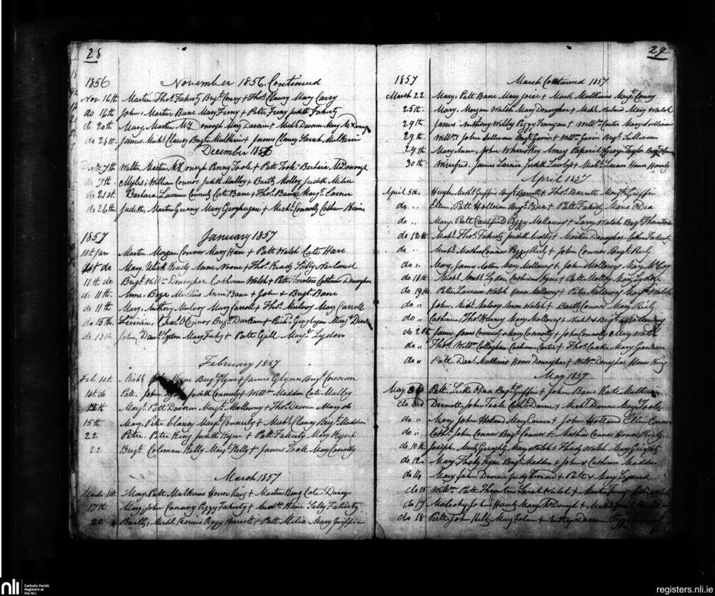Moycullen; County of Galway; Diocese of Galway. Baptisms, Nov. 1856 to May 1857
