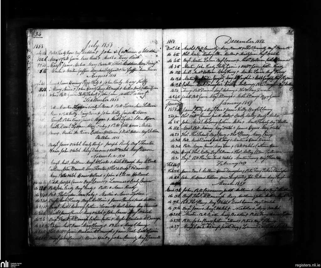 Moycullen; County of Galway; Diocese of Galway. Baptisms, July 1858 to Mar. 1859