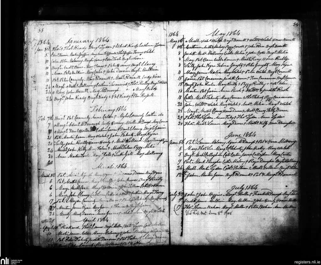 Moycullen; County of Galway; Diocese of Galway. Baptisms, Jan. 1864 to July 1864