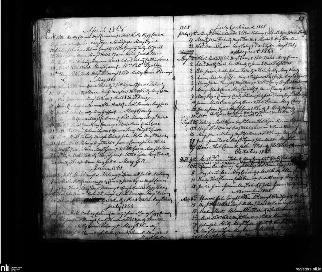 Moycullen; County of Galway; Diocese of Galway. Baptisms, Apr. 1868 to Nov. 1868