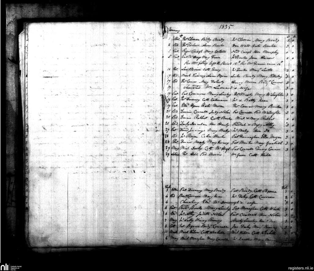Oranmore; County of Galway; Diocese of Galway. Baptisms, Jan. 1835 to Feb. 1835
