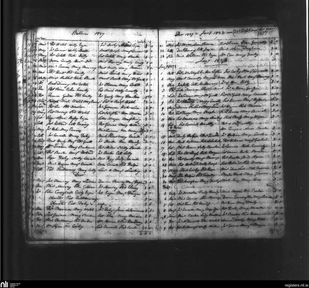 Oranmore; County of Galway; Diocese of Galway. Baptisms, Nov. 1837 to Feb. 1838