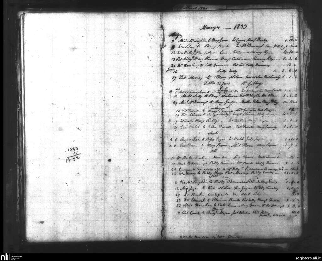 Oranmore; County of Galway; Diocese of Galway. Marriages, May 1833 to Dec. 1833