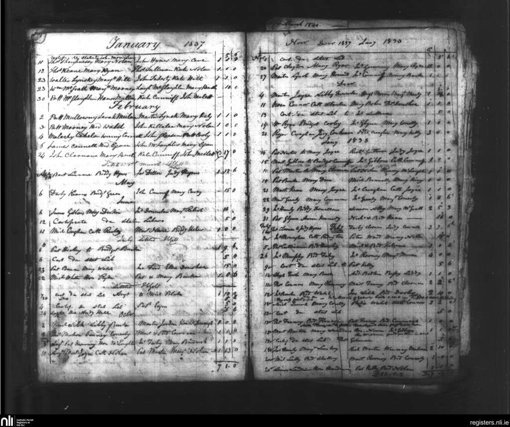 Oranmore; County of Galway; Diocese of Galway. Marriages, Jan. 1837 to Feb. 1838