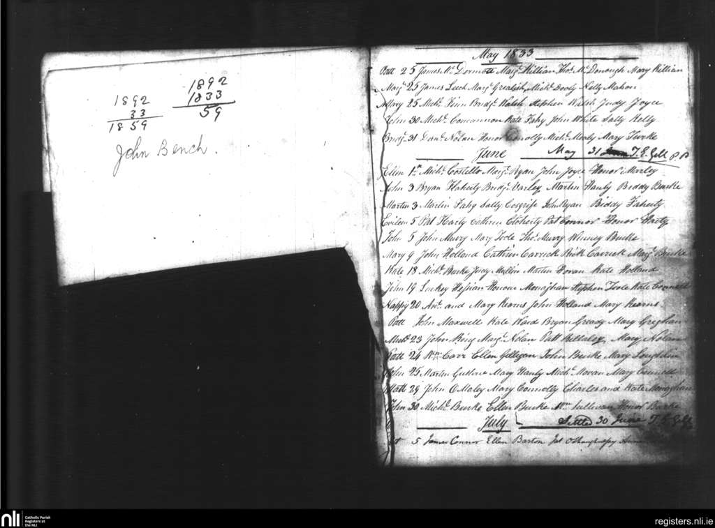 Oranmore; County of Galway; Diocese of Galway. Baptisms, May 1833 to July 1833