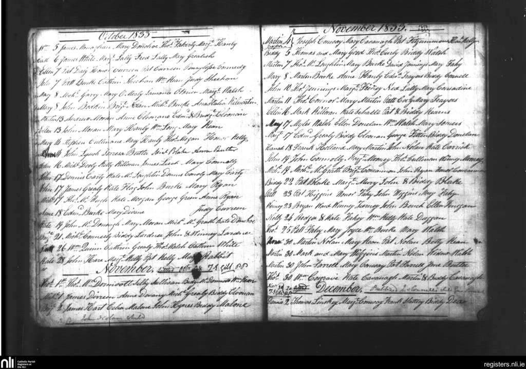 Oranmore; County of Galway; Diocese of Galway. Baptisms, Oct. 1833 to Dec. 1833