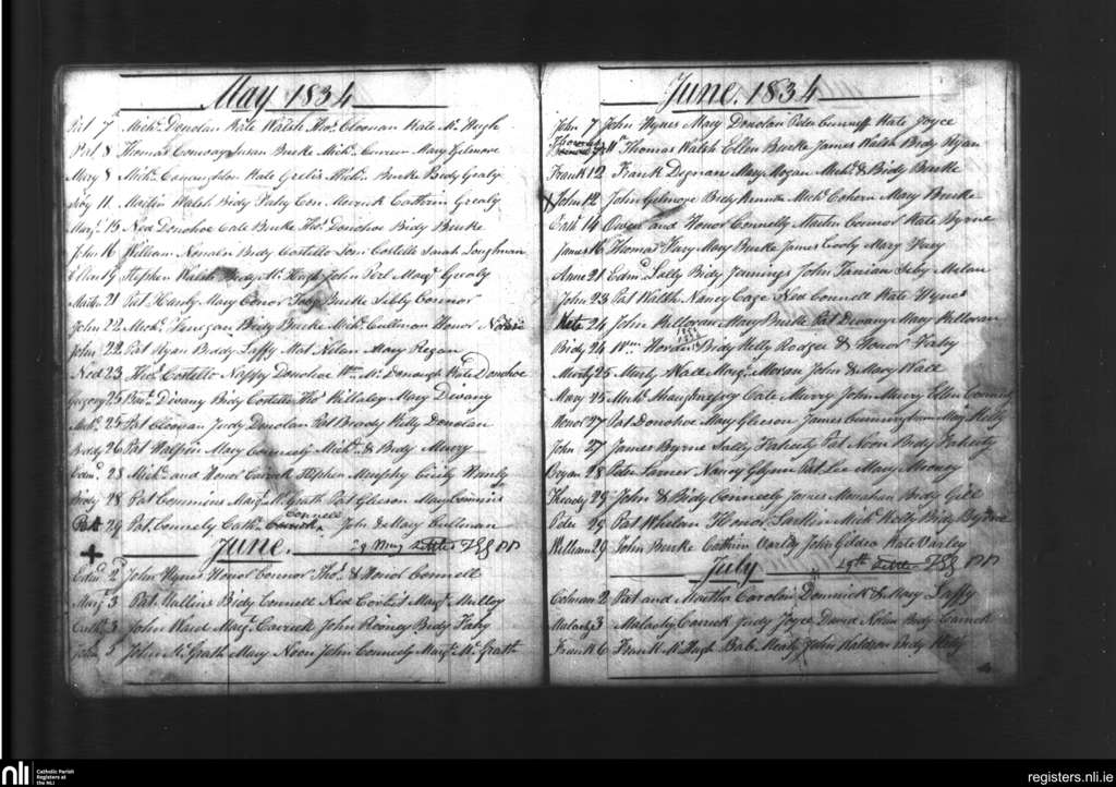 Oranmore; County of Galway; Diocese of Galway. Baptisms, May 1834 to July 1834