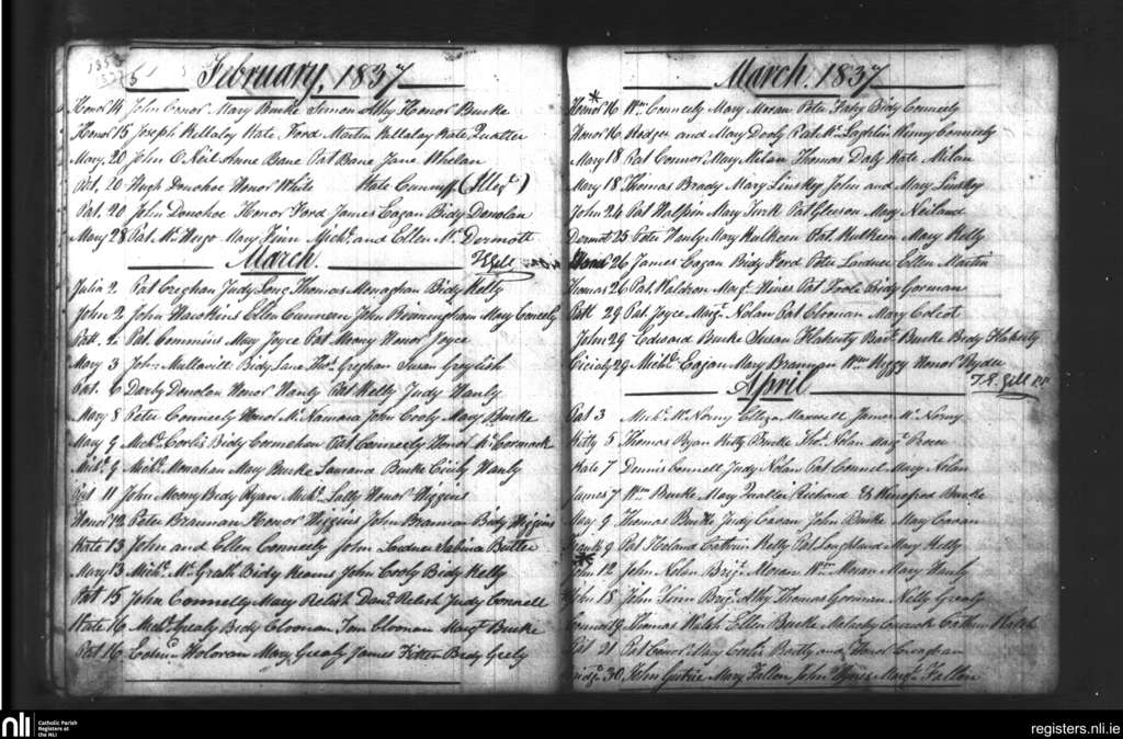 Oranmore; County of Galway; Diocese of Galway. Baptisms, Feb. 1837 to Apr. 1837