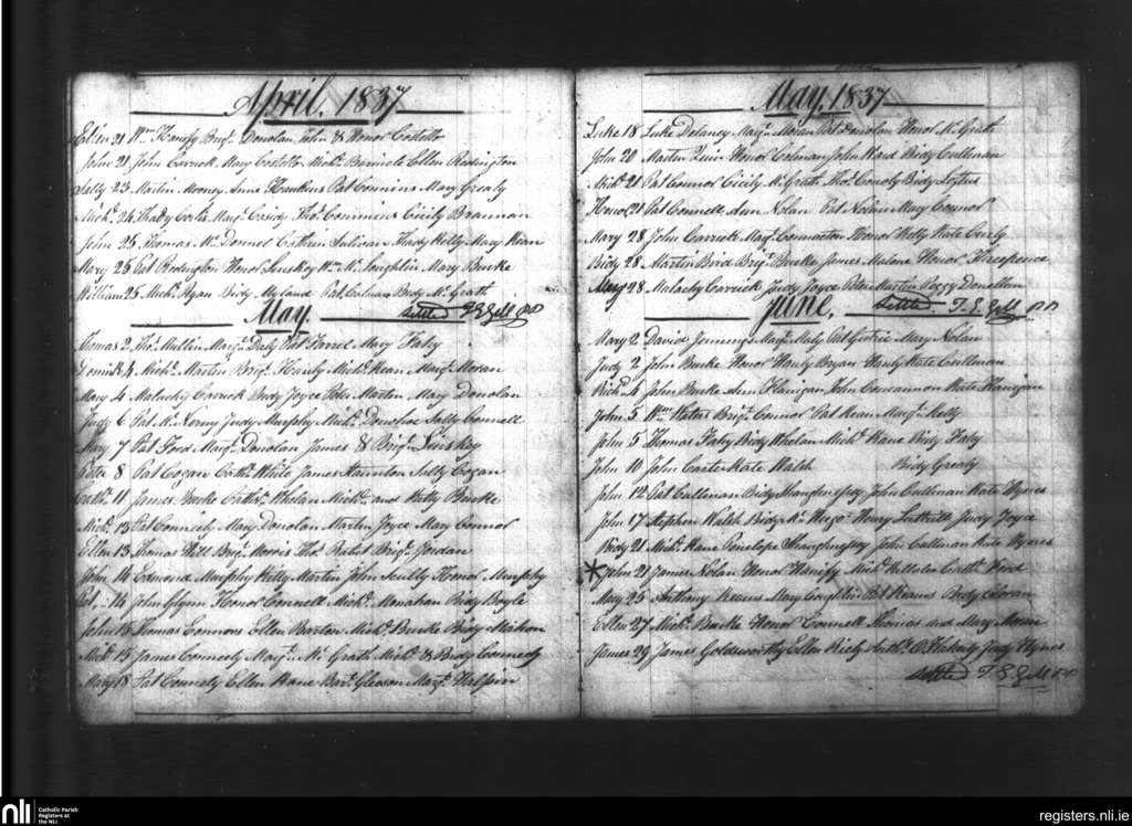 Oranmore; County of Galway; Diocese of Galway. Baptisms, Apr. 1837 to June 1837