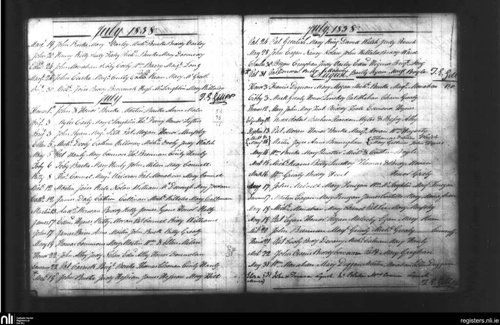 Oranmore; County of Galway; Diocese of Galway. Baptisms, July 1838 to Aug. 1838