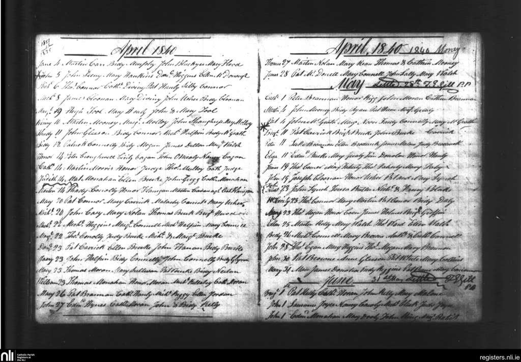 Oranmore; County of Galway; Diocese of Galway. Baptisms, Apr. 1840 to June 1840