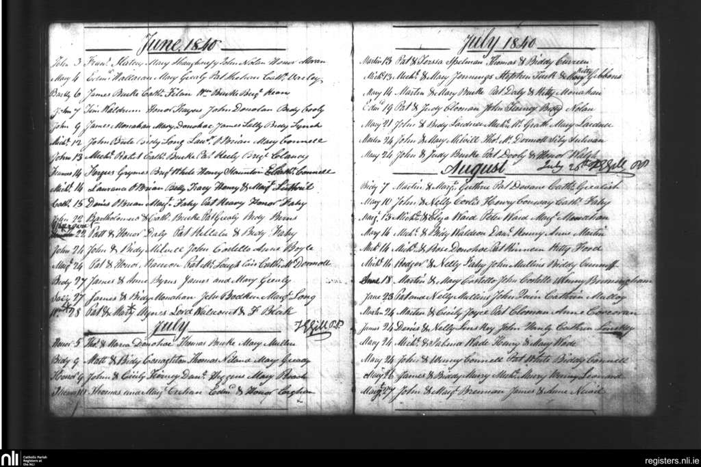 Oranmore; County of Galway; Diocese of Galway. Baptisms, June 1840 to Aug. 1840