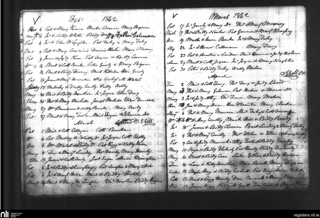 Oranmore; County of Galway; Diocese of Galway. Baptisms, Feb. 1842 to Apr. 1842
