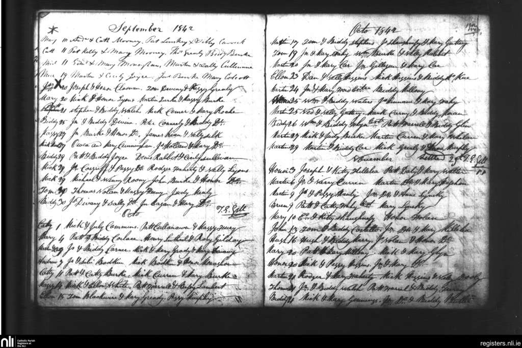 Oranmore; County of Galway; Diocese of Galway. Baptisms, Sep. 1842 to Nov. 1842