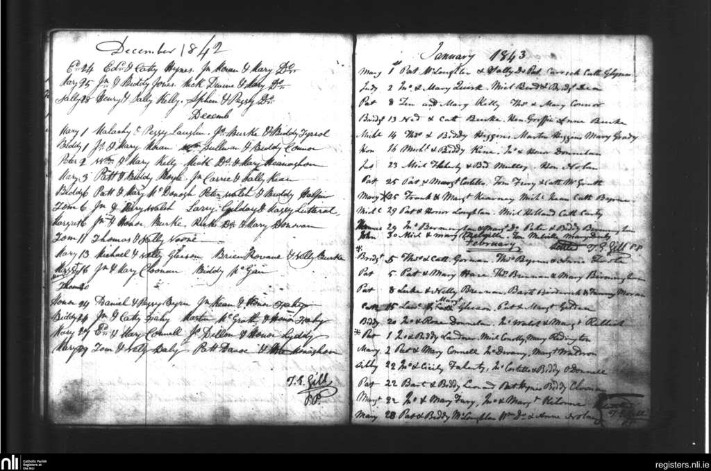 Oranmore; County of Galway; Diocese of Galway. Baptisms, Dec. 1842 to Feb. 1843