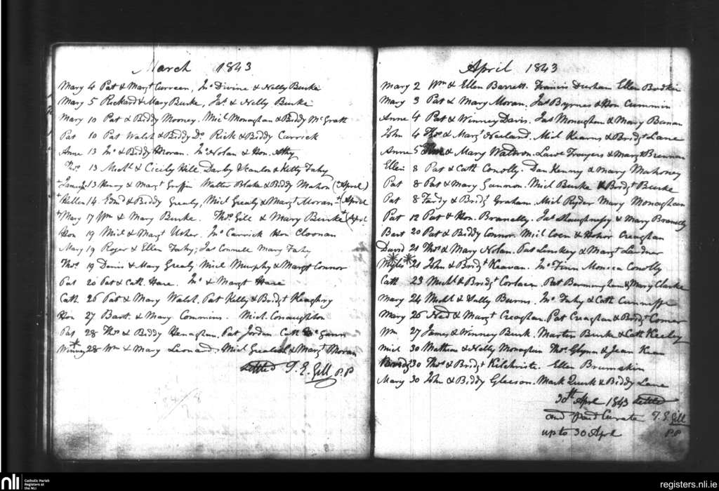 Oranmore; County of Galway; Diocese of Galway. Baptisms, Mar. 1843 to Apr. 1843