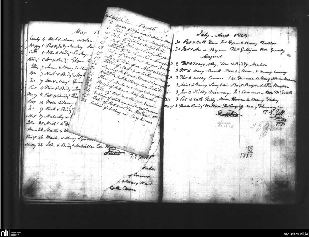 Oranmore; County of Galway; Diocese of Galway. Baptisms, July 1843 to Dec. 1843